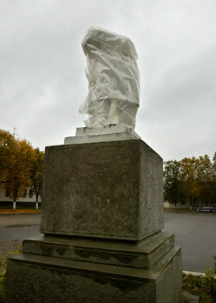 Сёньня помнік ужо стаяў, шчыльна абгорнуты цэлафанам.