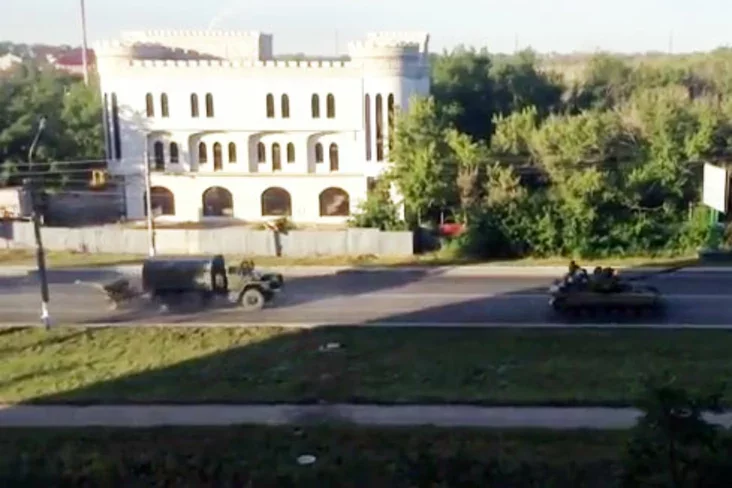 Па словах луганчан, каля 5-й раніцы яны пачулі гул на ўездзе ў Луганск з боку Краснадона. На дарозе яны ўбачылі калону тэхнікі з танкамі, БТРами і грузавікамі. Над калонай — сцяг Крыма і георгіеўскі сцяг.