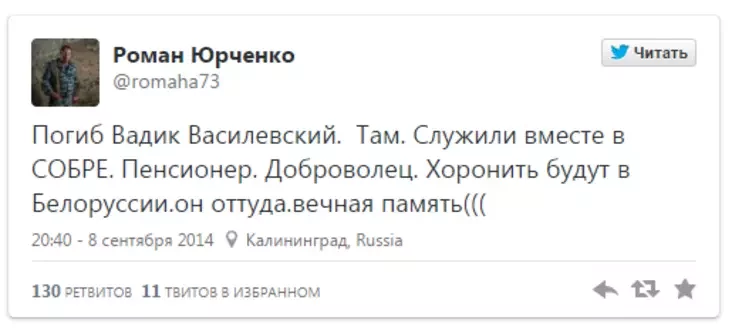 Пра гэта ў сваім «Твітары» піша афіцэр калінінградскага АМАПа Раман Юрчанка.