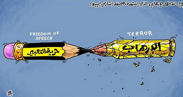 Па інтэрнэце ходзяць разнастайныя падборкі амерыканскіх і еўрапейскіх карыкатур на тэму расстрэлу карыкатурыстаў часопісу Charlie Hebdo ў Парыжы. Адну з такіх перадрукоўвала і НН. Аднак не толькі еўрапейцы, але і арабы ушанавалі памяць забітых карыкатурыстаў.