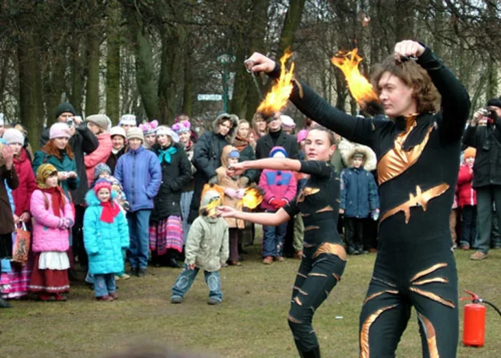 Пад супольнае выкананне вяснянкі «Жавароначкі, прыляціце» фальклорныя калектывы аздобілі дрэва сваімі птушкамі — з паперы, саломы, цеста. А наперадзе іх чакала вогненная дзея — спаленне Марэны, вобраза зімы і «смяротнага духа». Пачалася заключная, гульнёва‑танцавальная, частка абрадавага свята пад назвай «Свята раўнадзенства». Сёлета да ўдзельнікаў абрадавага свята далучыліся вядомыя дзіцячыя фальклорныя калектывы Мінскай вобласці — «Куманёк» з Міханавіцкага Дома фальклору Мінскага раёна (кіраўнік Ларыса Рыжкова) і «Вянок» з Ракаўскага «Цэнтра культуры і вольнага часу» Валожынскага раёна (кіраўнік Лізавета Пятроўская). Яны прывезлі з сабою абрадавыя гульні і традыцыйныя танцы свайго рэгіёну для супольнага выканання ўдзельнікамі свята. Гэта танцы «Кракавяк», «Акуліна», «Падэспан», «Лявоніха», абрадавыя гульні «Мак», «Проса», «Цар», «У карагодзе мы былі», «Явар». Студэнты і выкладчыкі факультэта традыцыйнай культуры і сучаснага мастацтва Беларускага дзяржаўнага універсітэта культуры і мастацтваў ужо не першы год ладзяць фальклорныя дыскатэкі для моладзі ў сучасных дыскаклубах г.Мінска. На абрадавым свяце яны паказалі ўжо папулярныя побытавыя танцы «Ойра», «Картузэ», «Базар», «Какетка». Свае танцы паказалі і ўдзельнікі фальклорнага калектыва «Мілавіца» Цэнтра пазашкольнай работы «Ветразь» Кастрычніцкага раёна г.Мінска.