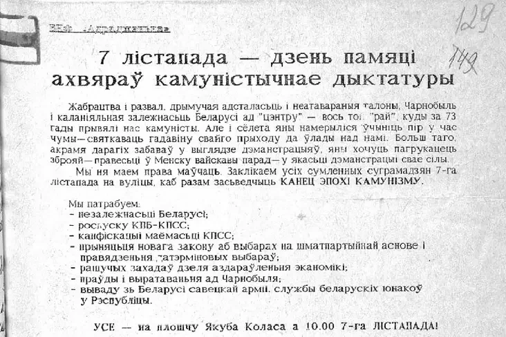 7 лістапада 1990 г. у цэнтры беларускай сталіцы прайшло альтэрнатыўнае шэсце «Памяць ахвяр камуністычнай дыкатуры», зладжанае перадусім Беларускім народным фронтам.
