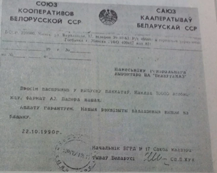 Матэрыяльна-тэхнічнае забеспячэнне шэсця ўзяла на сябе адна з найбуйнешых недзяржаўных арганізацый — Саюз кааператываў. Дарэчы, сам С. Андросаў працаваў у сталічным кааператыве «Лілія». Кааператары аказалі моцную падтрымку ў справе друку адпаведных улётак. Напрыклад, прадстаўнік Саюзу кааператываў, заснавальнік адной з самых вядомых — «Свабода» — апазіцыйных выданняў Павел Жук 22 кастрычніка 1990 г. звярнуўся да адміністрацыі вытворчага аб’яднання «БелаўтаМАЗ». Аднак у тыя часы не ўсё можна было зрабіць за грошы. Друку на прадпрыемствах такіх улётак і іншай прадукцыі, што ў дзяржаўнай прэсе іменавалася не іначай, як «антикоммунистическая стряпня», актыўна супраціўляліся партыйныя камітэты.