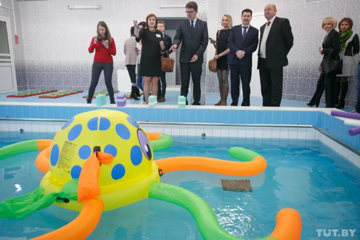 Ганаровым гасцям паказалі басейн з чашай на 20 «кубоў». Памочнік прэзідэнта пацікавіўся арганізацыяй заняткаў, пасля чаго чыноўнікі завяршылі абход.