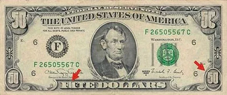 Яна была выраблена з пяцідаляравай купюры, на якую даклеілі лічбу «50» і надпіс «FIFTY DOLLARS». У той жа час на купюры заставаўся партрэт Лінкальна замест неабходнага Гранта.