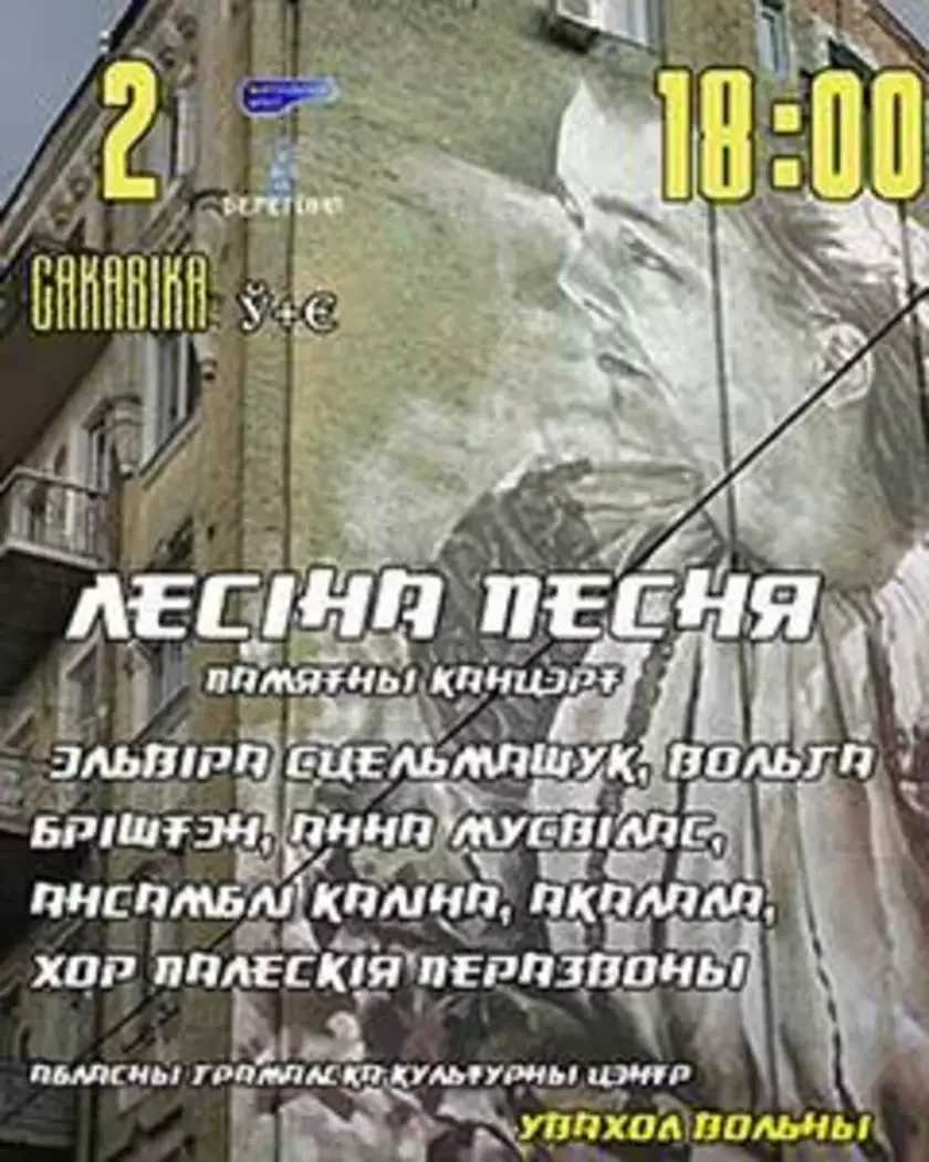 У сераду 2 сакавіка а 18.00 у Абласным грамадска-культурным цэнтры Брэста (вул.Камуністычная 1) адбудзецца канцэрт «Лесіна песня».