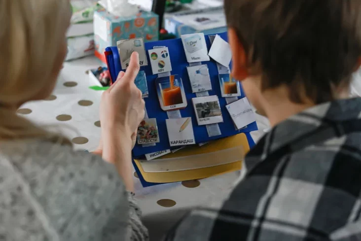 Багдан мала карыстаецца мовай і словамі, а камунікуе праз адмысловы альбом з карткамі. Каб засвоіць сыстэму альтэрнатыўнай камунікацыі PECS, бацькам таксама трэба вучыцца самім і зьвяртацца да спэцыяліста. Садок, якіх Багдан зьмяніў ужо некалькі, такому не навучыць.