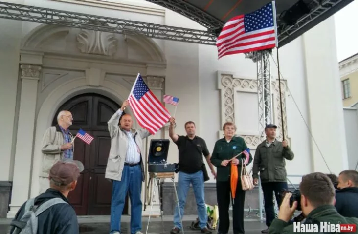 Некалькі жыхароў Мінска зладзілі святкаванне Дня Незалежнасці ЗША каля Ратушы ФОТА