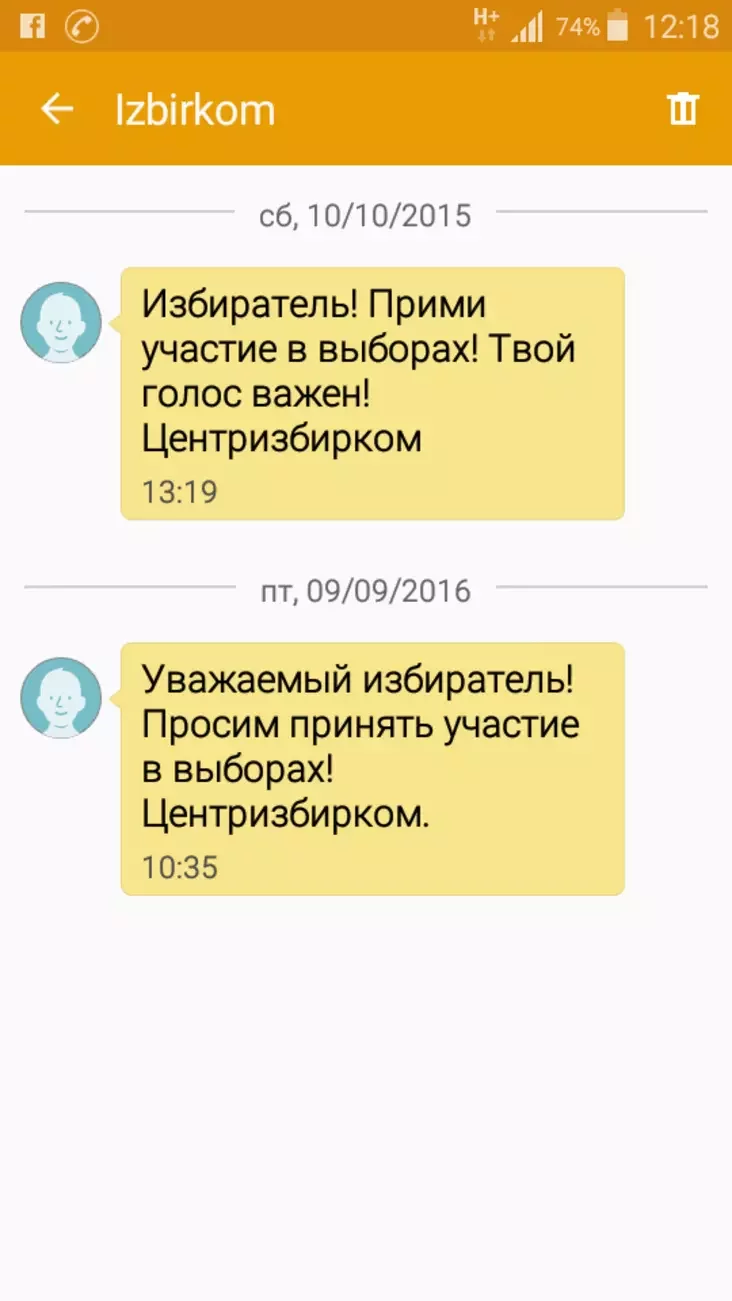 Летась ЦВК таксама заклікаў на выбары шляхам смс. З таго часу змяніўся тэкст паведамлення. Прынамсі, была прыбраная фраза «Твой голас важны».