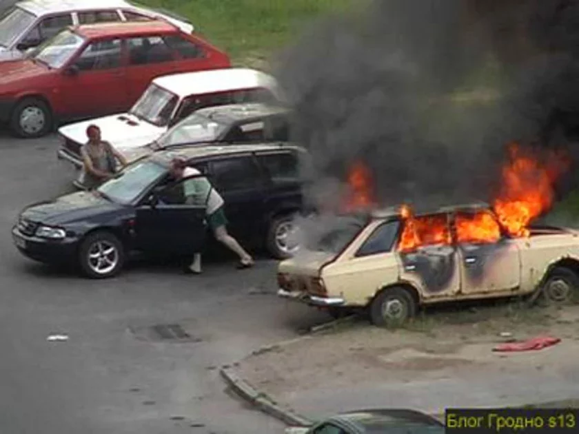 Сярод дня ў мікрараёне Вішнявец яны падпалілі легкавы аўтамабіль.
