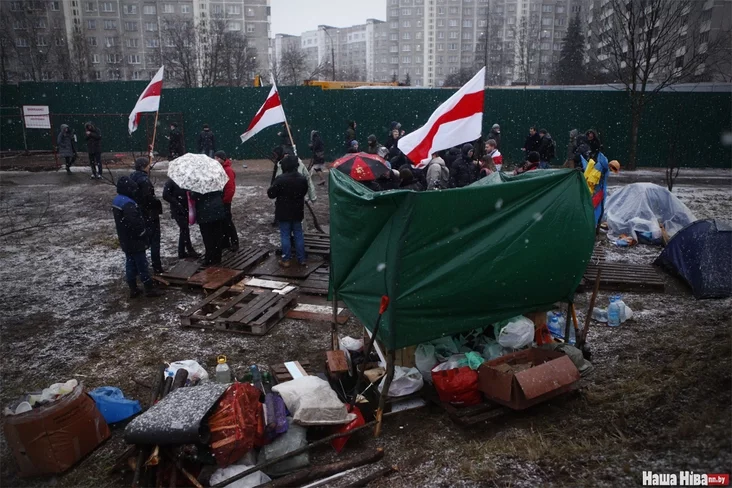 А я нікога тут не ведаю, хаця твары амаль усе знаёмыя, з навінаў. Ну толькі што Змітра Дашкевіча, было, пазнаёміўся, на апошняй Плошчы. З таго часу, бывае, перасякаемся тэлефоннымі гутаркамі, па рабоце. Але цяпер з ім не пагаворыш — яго няма каля вогнішча. Ён робіць Справу. Цяпер нешта абмяркоўвае з сябрамі, якія таксама амаль да нас не падыходзяць, — патрулююць дарогі да бочкі, да сцягоў, да нас… А калі і падыдзе хто з іх, то і не кажа нічога. Пагрэе сабе рукі над вогнішчам, паслухае, паглядзіць і зноў ідзе ў снег, які так хутка студзіць нашы кубкі з гарбатамі і прыглушае вогнішча, без якога я б тут і гадзіны не пратрымаўся. Але ўсё адно раніцай людзей зусім не застанецца — хто пешшу, хто на таксоўцы, хто з першымі аўтобусамі паедзе дадому. І я таксама буду чакаць на восьмую гадзіну, якую ўжо сам сабе адмераў, каб нарэшце выбрацца з гэтага холаду, каб легчы ў сваю цёплую пасцелю. Нягледзячы на тое, што а восьмай толькі пачнецца сапраўдая барацьба. Нягледзячы на тое, што нехта з сапраўдных абаронцаў папросіць мяне застацца даўжэй. Яны, здаецца, могуць лёгка абысціся і без гэтага вогнішча, і без цёплай пасцелі.