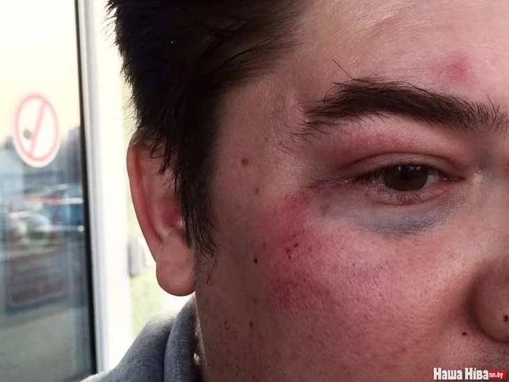 У Алега сінякі пад вачыма, вельмі баліць сківіца — ён размаўляе з цяжкасцю; разбітыя вусны. Таксама моцна кружыцца галава, раскрышаны зуб. Ён губляў прытомнасць пасля збіцця.