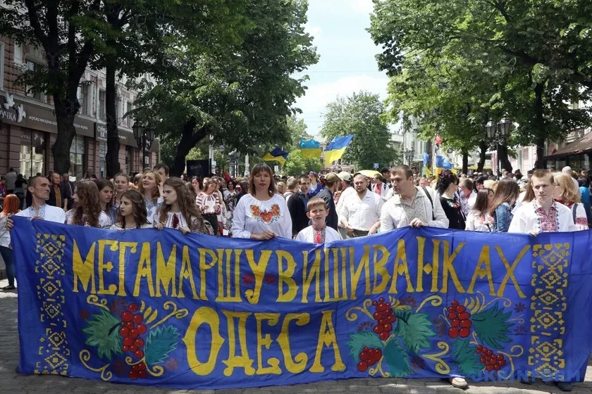 Больш за дзве тысячы адэсітаў розных пакаленняў са сцягамі Украіны і Еўрасаюза ў руках выйшлі на дзясяты «Мегамарш у вышыванках» па цэнтральных вуліцах марской сталіцы Украіны, паведамляе «Укрінформ».