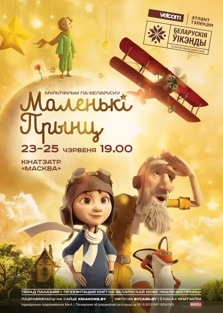 23—25 чэрвеня адбудуцца паказы мультфільма «Маленькі Прынц» у беларускай агучцы. Разам з паказамі будзе прэзентавана першае ў незалежнай Беларусі выданне кнігі «Маленькі Прынц» па-беларуску.