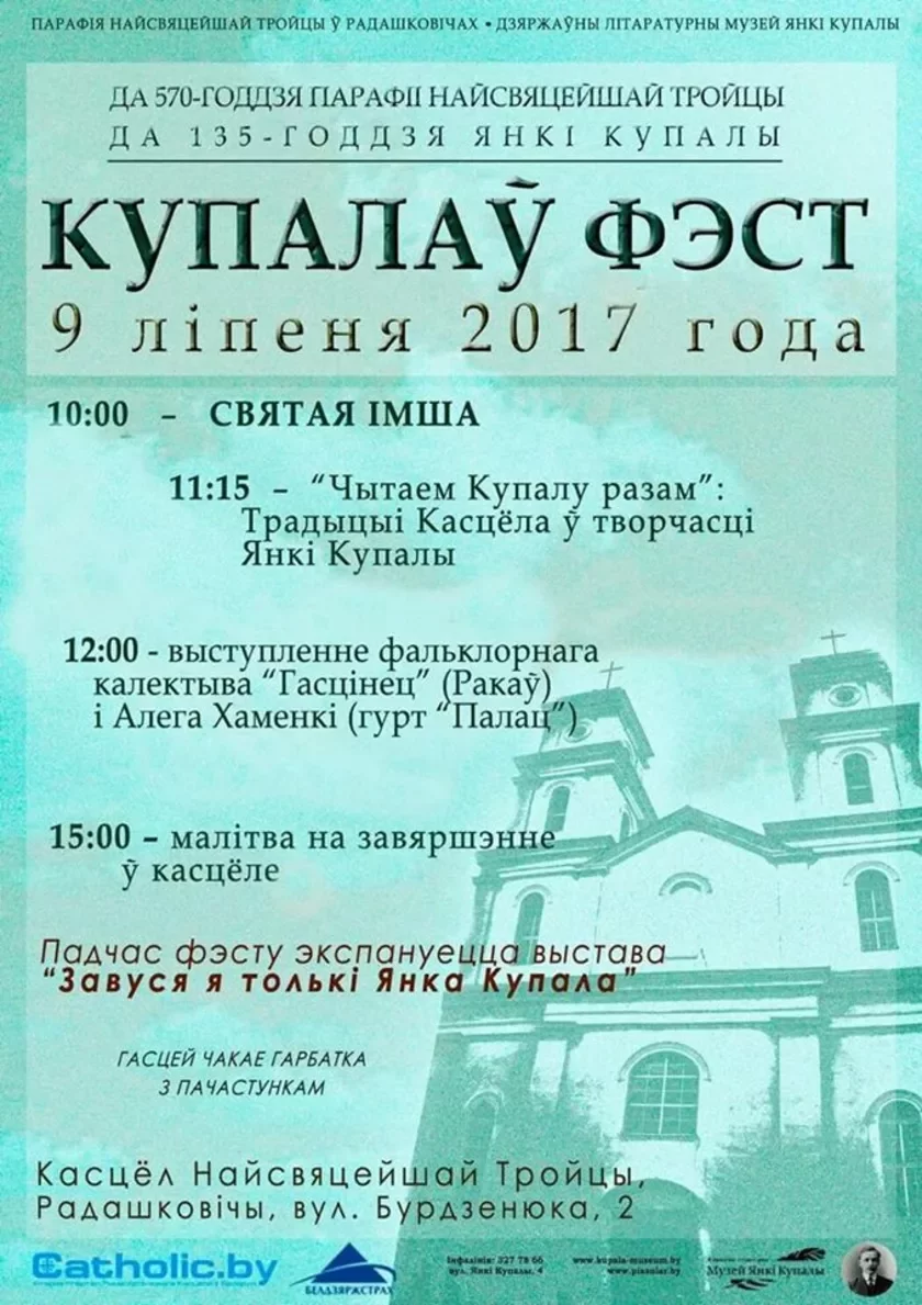 У касцёле, дзе хрысцілі Янку Купалу, пройдзе Купалаў фэст