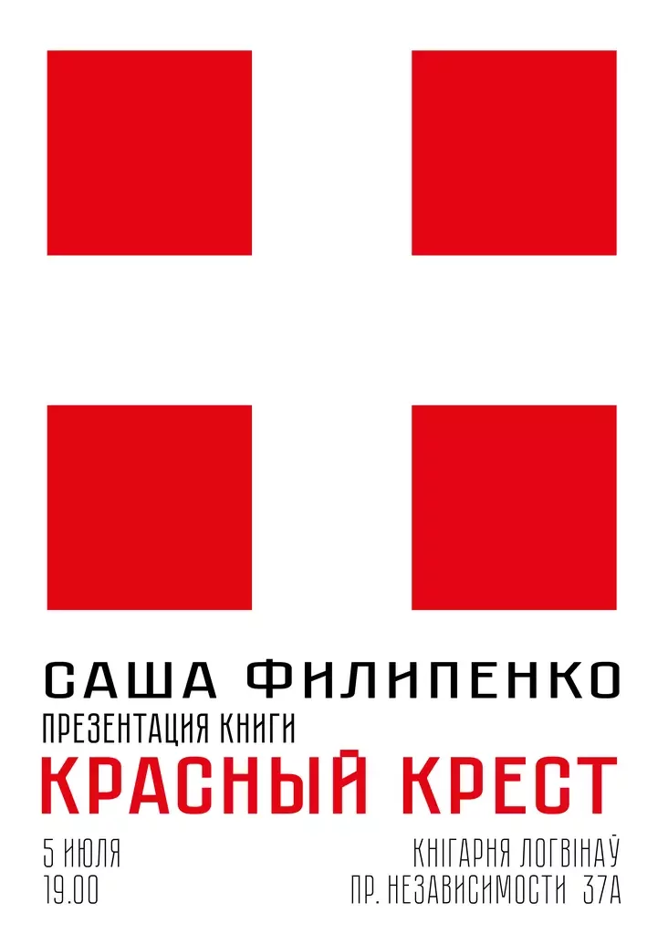 Прэзентацыя рамана Сашы Філіпенка «Чырвоны крыж» пройдзе 5 ліпеня ў 19:00 у кнігарні «Логвінаў».