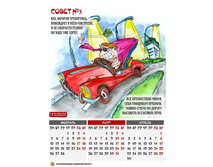 «Адпраўляешся ў дарогу, ты прымі на пасашок»: ДАІ Гродна выпусціла каляндар са шкоднымі парадамі