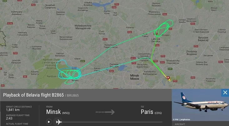 Самалёт Мінск — Парыж дзве гадзіны кружыў над Івянцом і Лагойскам, а пасля вярнуўся ў аэрапорт.