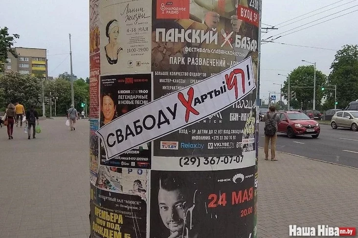 У Мінску працягваюць з'яўляцца налепкі ў абарону заблакаванага сайта «Хартыя-97». Фота зроблена ў раёне станцыі метро «Пушкінская».