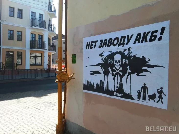Раніцай 10 чэрвеня ў цэнтры Брэста з'явіўся прынт супраць будаўніцтва акумулятарнага завода, перадае Белсат.