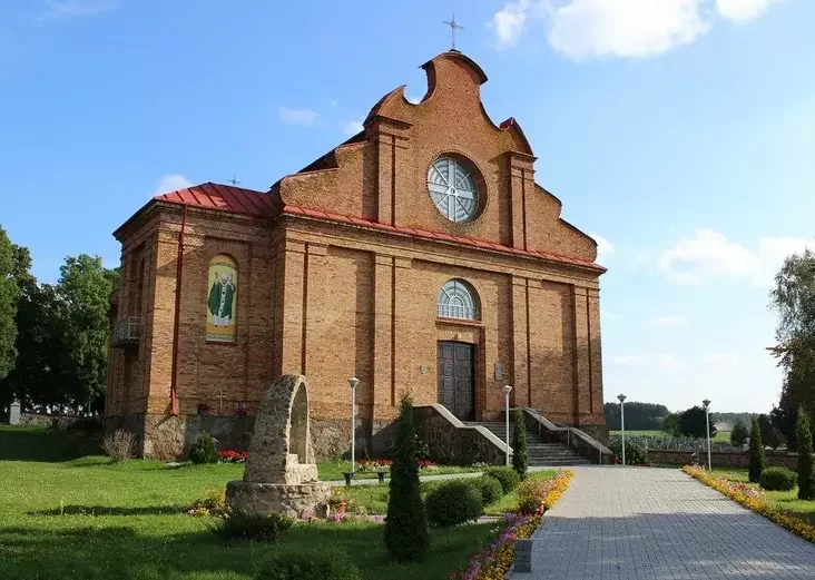 І першы прыпынак - вёска Рубяжэвічы з велічным касцёлам Св. Юзафа.