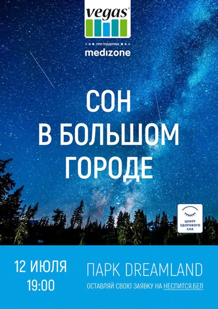 12 ліпеня мінчан запрашаюць на незвычайны рэлакс-чэлендж — адмовіцца на 120 хвілін ад тэлефона, пазірання на гадзіннік і гутарак і цалкам расслабіцца. Вытворца тавараў для сну Vegas абяцае, што 10 чалавек, якім удасца выканаць усе ўмовы і не заснуць, правядуць ноч пад зорным небам у цэнтры горада, дзе для іх абсталююць летнюю спальню.