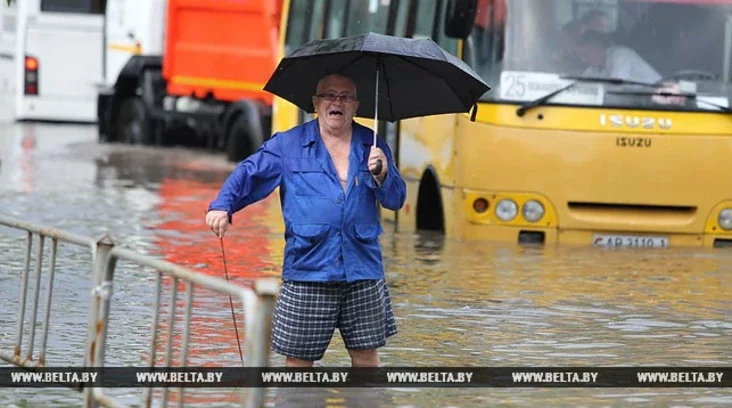 Моцны лівень падтапіў вуліцы ў цэнтры Брэста. Навальніца накрыла абласны цэнтр сёння каля 17 гадзін. Стыхія працягвалася не менш за паўгадзіны. Лівень быў з громам і моцнымі парывамі ветру.