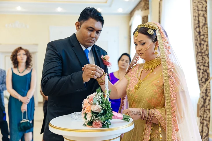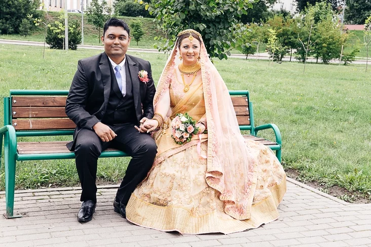 У выхадныя ў слуцкім ЗАГСе пабраліся шлюбам Алена і Рахім Шанкара. Пасля вяселля Алена распавяла, як яна пазнаёміліся з мужам.