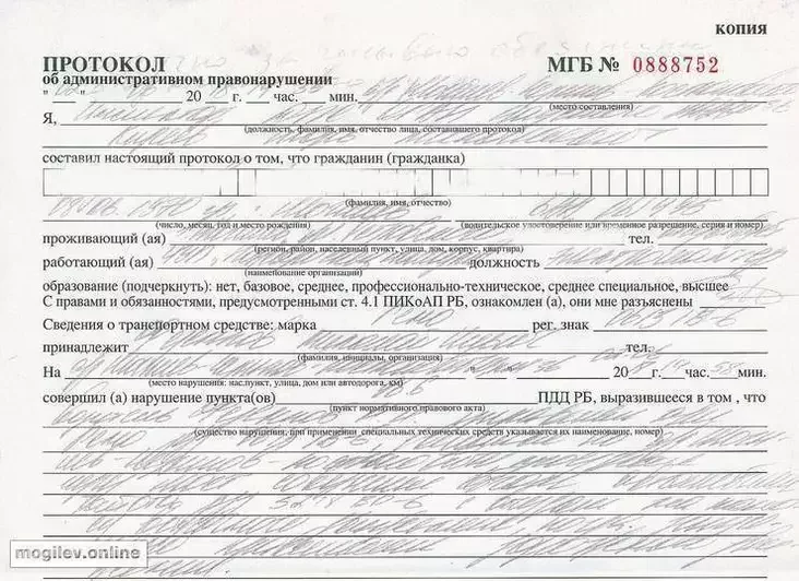 Супрацоўнік Чавускага АДАІ склаў пратакол, які немагчыма прачытаць ФОТАФАКТ