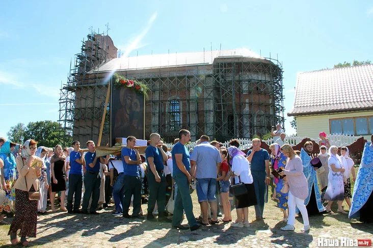 Абраз па традыцыі і па сталай дамоўленасці неслі дужыя мальцы з мясцовай выратавальнай службы. Пры набліжэнні абраза людзі складалі ахвяру у скрыню перад абразом, а затым праходзілі пад абразом. Такая традыцыя.