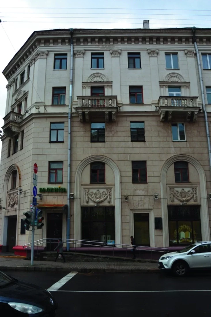 Дом збудавалі па тыпавым праекце: пісьменніцкі дом у Маскве меў дакладна такую ж планіроўку — па дзве кватэры на пляцоўцы, трохпакаёўка і чатырохпакаёўка. Пісьменнікам адвялі два пад’езды — і то туды трапілі пару вайсковых ды міліцэйскіх чыноў.