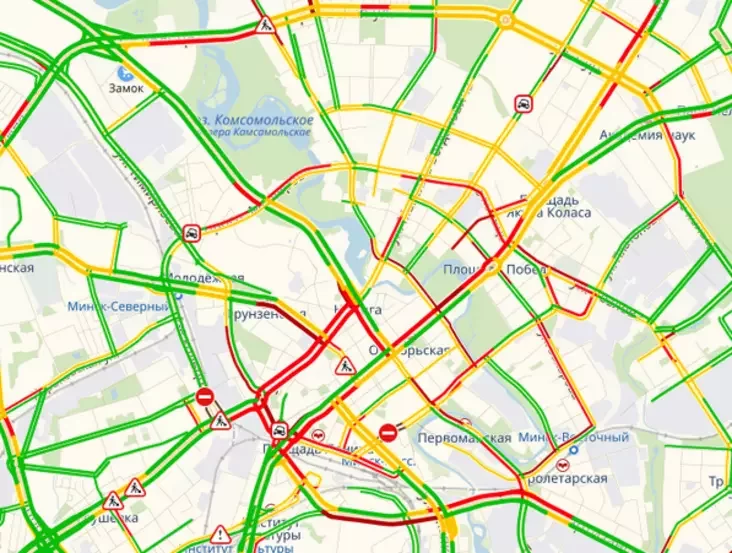 У цэнтры Мінска ўзнікла складаная сітуацыя на дарогах. Паводле сэрвісу «Яндэкс.Заторы», зараз сітуацыя ацэньваецца ў 9 балаў з дзесяці.