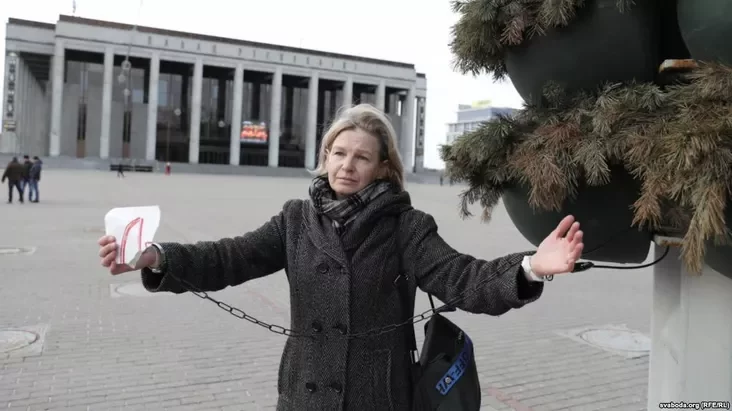 Актывістку аштрафавалі за тое, што прыкавала сябе ланцугом да слупа ў цэнтры Мінска