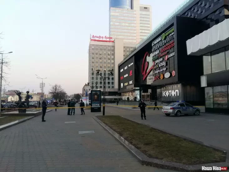 У Мінску эвакуіруюць ГЦ Галерэя. Гандлёвы цэнтр ачапілі з усіх бакоў. Побач стаяць машыны з мігалкамі і работнікі спецыяльных службаў, у тым ліку сапёры.