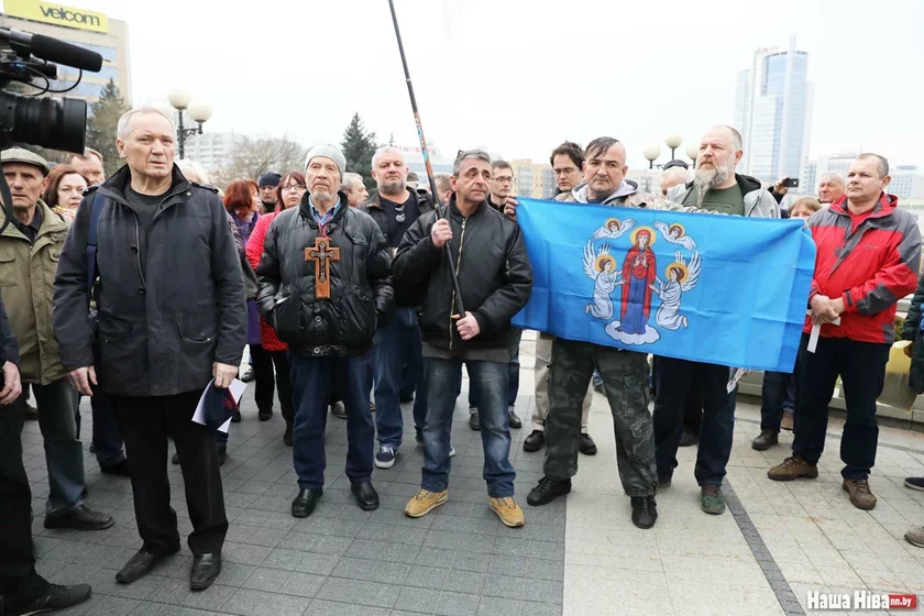 У Мінску, на плошчы Свабоды, каля сабора Святога Духа, 7 красавіка прайшла малітва ў знак пратэсту супраць зносу крыжоў у Курапатах.