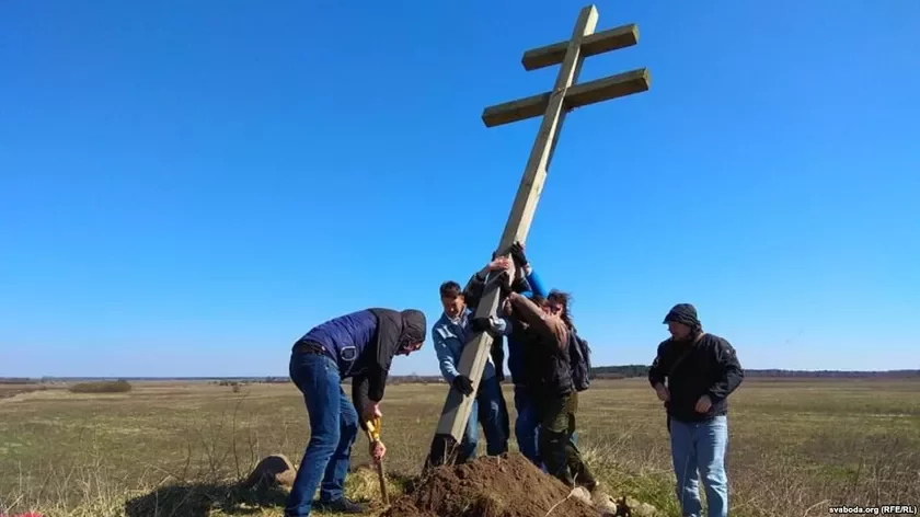 Гарадзенскія актывісты ўсталявалі крыж паўстанцам Кастуся Каліноўскага на кургане на Лідчыне 14 красавіка.