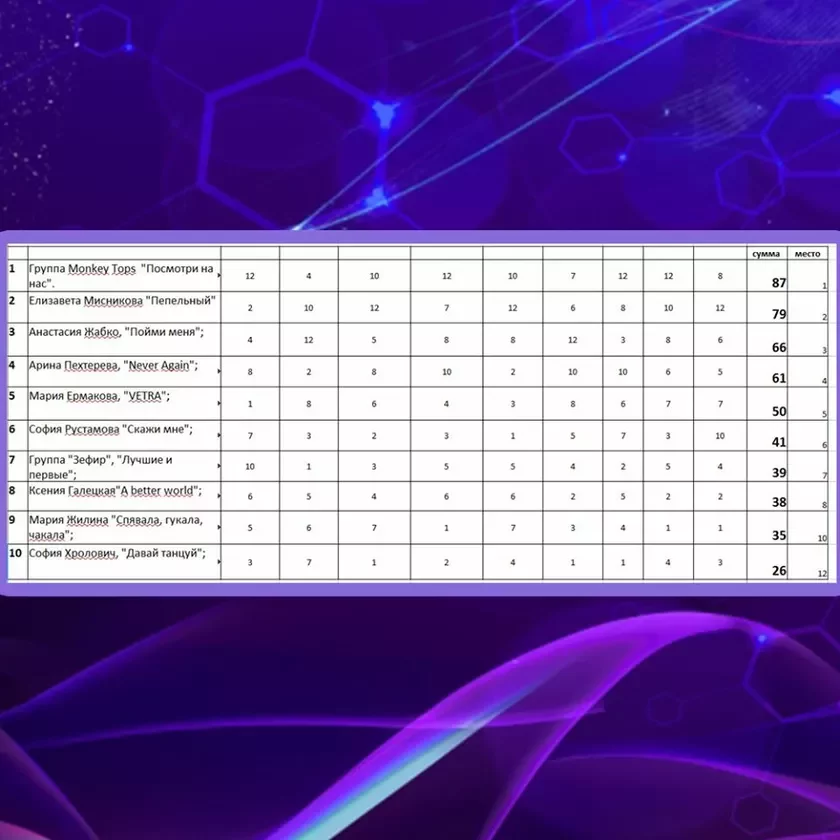 Белтэлерадыёкампанія апублікавала ў сваім фэйсбуку табліцу з баламі, якія сябры журы паставілі канкурсантам падчас адбору на «Еўрабачанне». Праўда, не называючы, дзе чые балы.