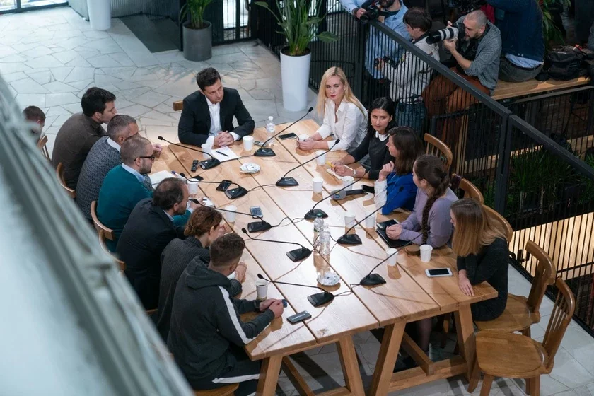 10 кастрычніка прэзідэнт Украіны Уладзімір Зяленскі зладзіў шматгадзінную сустрэчу з прадстаўнікамі СМІ ў Кіеве, на якую акрэдытаваліся амаль 300 журналістаў. Прэс-марафон прайшоў на новым Kyiv Food Market, дзе пад адным дахам на фудкорце размяшчаюцца больш за 20 рэстаранаў.