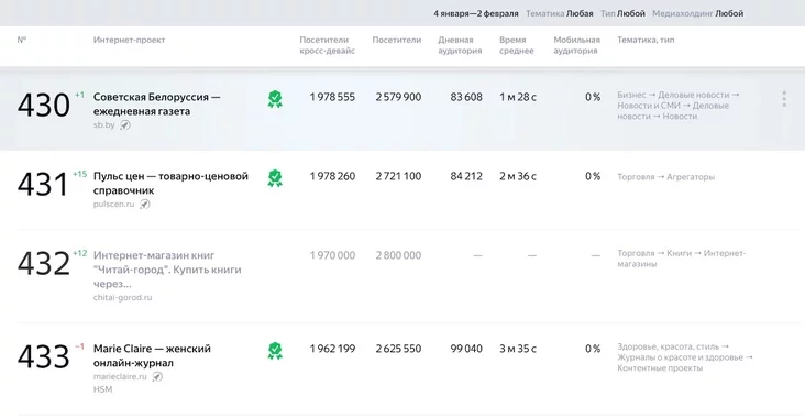 Но в реальности, не дотягиваясь до указанных выше Tut.by, Onliner.by, «Нашей Нивы», они ориентируются на иной путь — попытаться достичь высоких цифр за счет случайного попадания в рекомендационные системы к российскому потребителю.
