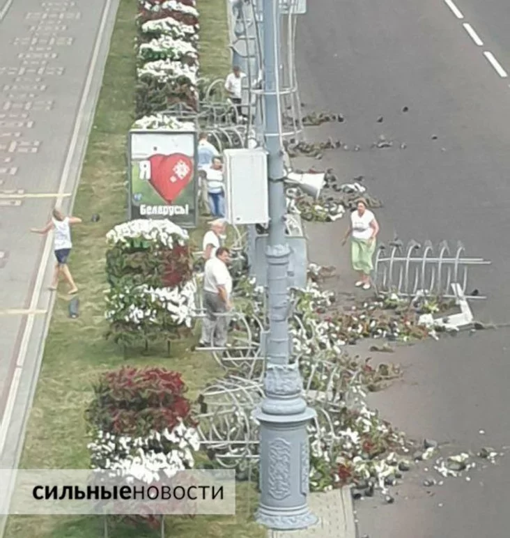 На плошчы Леніна ў Гомелі павалілася кампазіцыя з кветак, паведамляюць «Сильные новости».