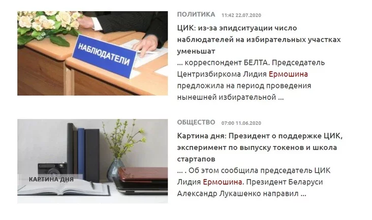 «Наша Ніва» ўжо звяртала ўвагу, што дзяржаўныя СМІ, у тым ліку агенцтва БелТА, пасля 10 чэрвеня перасталі згадваць прозвішча старшыні Цэнтрвыбаркама Лідзіі Ярмошынай.