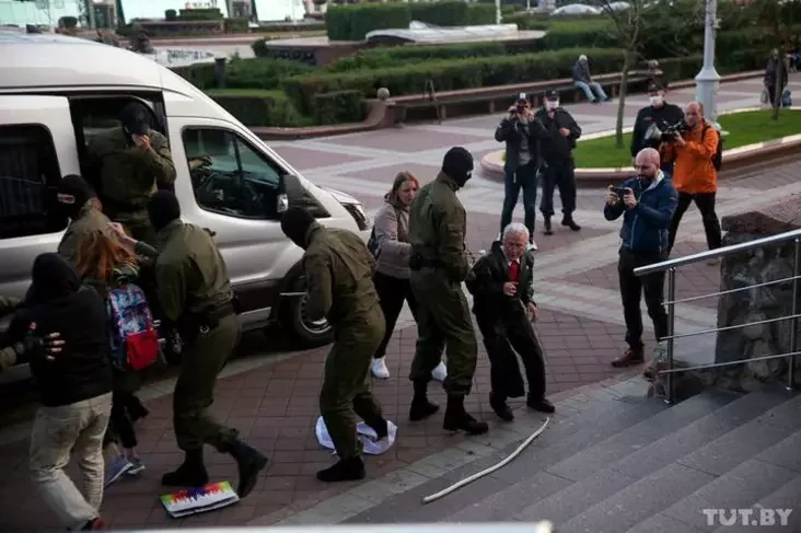 Падчас затрыманняў на Плошчы Незалежнасці прысутнічала Ніна Багінская. Яна спрабавала адкрыць дзверы сіняга мікрааўтобуса і ўступіла ў сварку з людзьмі ў форме. Яе не затрымлівалі.