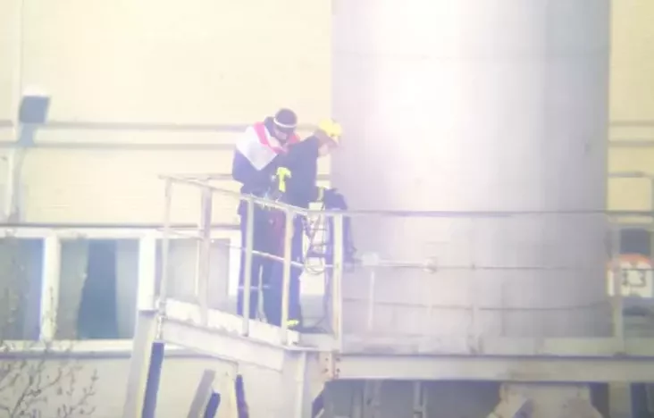 Нагадаем, сёння работнік «Атланта» падняўся на трубу на тэрыторыі завода. Ён запісаў зварот да Аляксандра Лукашэнкі, у якім просіць аб'явіць аб сваім сыходзе, спыніць гвалт, вызваліць усіх палітычных зняволеных.