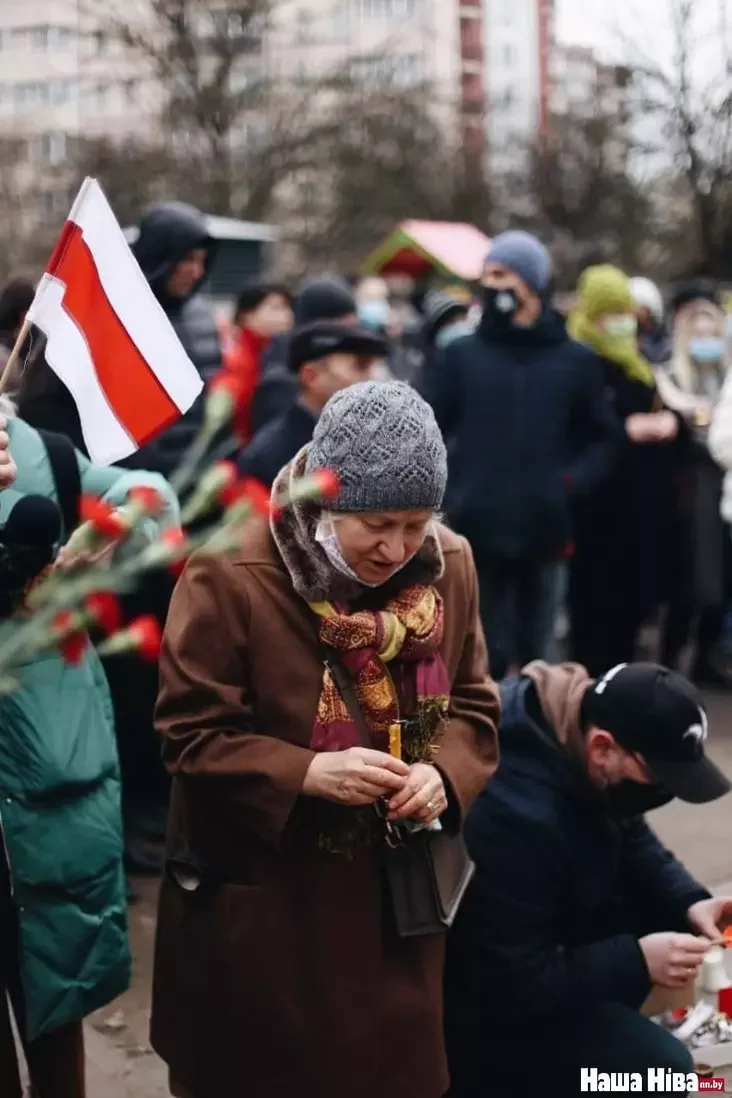 Плошча Перамен сёння днём. Сюды прыйшлі людзі, каб ушанаваць памяць загінулага Рамана Бандарэнкі.
