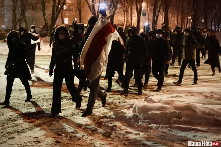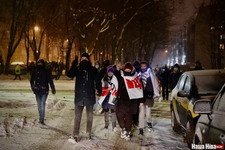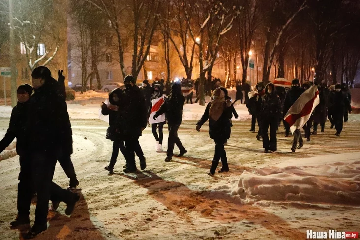 У раёне Пушкінскай 150-200 чалавек прайшлі з бел-чырвона-белымі сцягамі. Бусы з сілавікамі круціліся на суседніх вуліцах, але не змаглі нікога затрымаць.