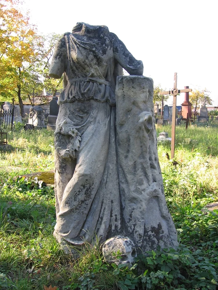 Дзеці на помніку — яўны знак, што маладая нябожчыца пакінула па сабе сірот. А вось выява жанчыны ў жалобе зусім не асацыюецца з канкрэтнай сваячкай памерлага.