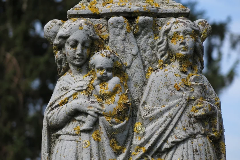 Другі найважнейшы персанаж хрысціянства — гэта Дзева Марыя. Яе выява сустракаецца на могілках заўважна часцей за Хрыстову, што сведчыць пра надзвычайную папулярнасць яе культу як у ХІХ стагоддзі, так і сёння. Часта гэта паўнароставая скульптура са складзенымі на грудзях рукамі, якая стаіць на паўсферы і нагою прыціскае змяю.