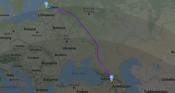 Так выглядалі траекторыі сённяшніх рэйсаў Рыга—Тбілісі і Рыга-Адэса.