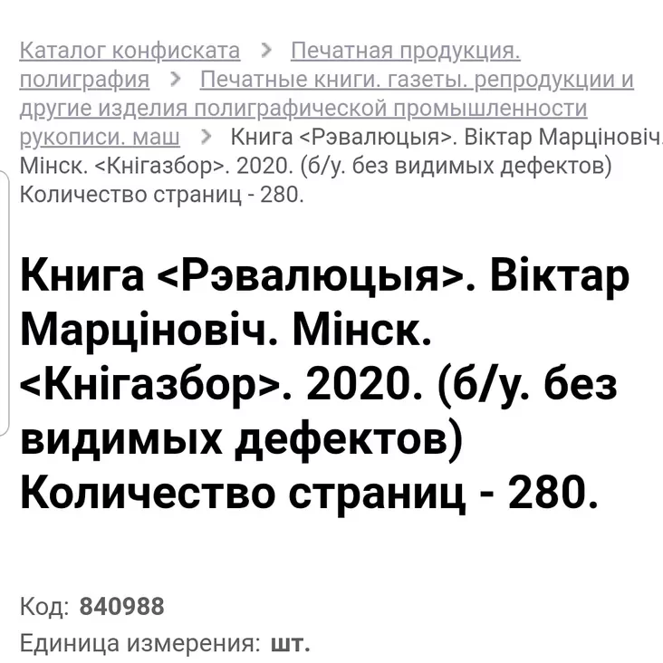 Забраная «Рэвалюцыя» Віктара Марціновіча прадаецца ў краме канфіскату