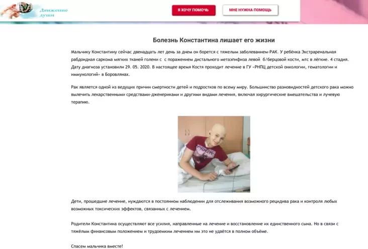 У «Руху душы» нічога гэтага няма. У некаторых дзяцей інфармацыя пра хваробу ёсць, у некаторых — проста агульныя фразы.